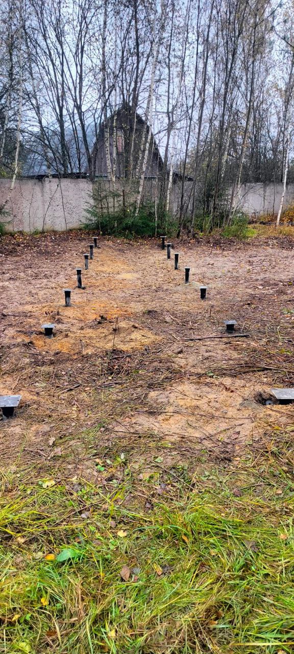 • Установка свай выполнена с использованием специализированного оборудования, что позволило добиться высокой точности. Каждая свая ввинчена строго по вертикали, независимо от перепадов высот участка.