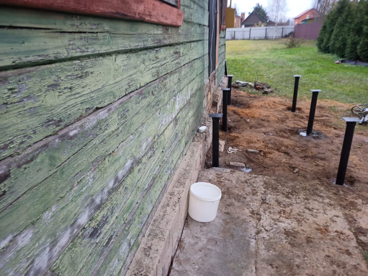 Для фундамента крыльца было использовано 6 винтовых свай. Процесс установки включал: