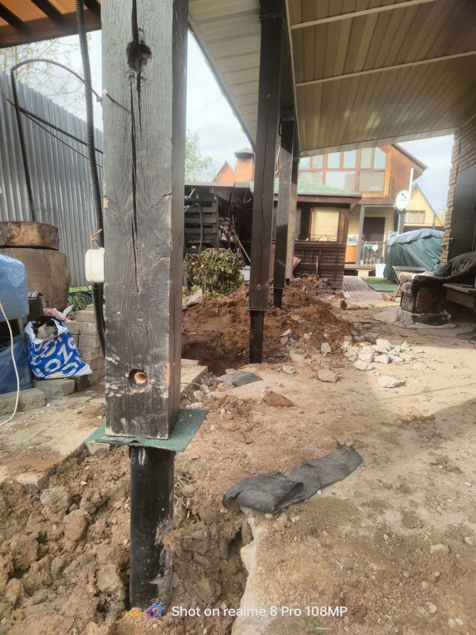 Пример работы компании "Сваекрутов": замена бетонных опор под автомобильным навесом в Подольске