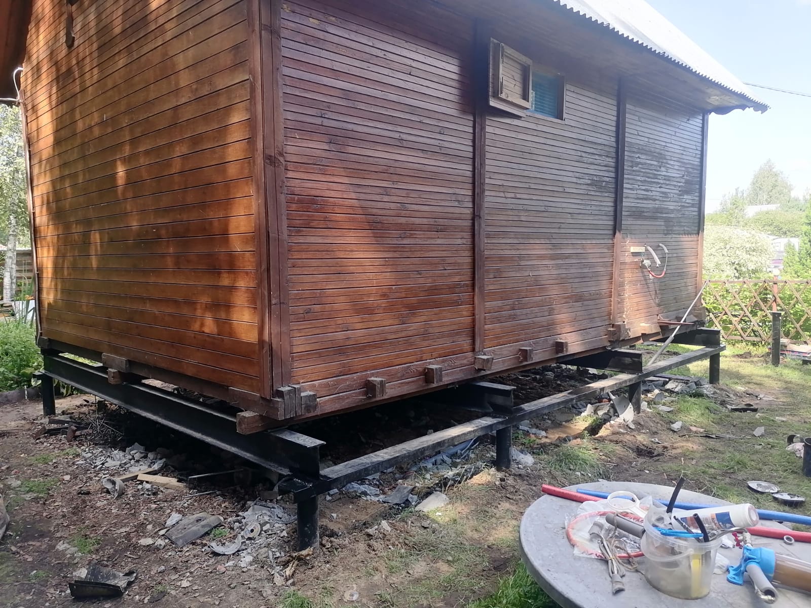 —Заменили старый фундамент на винтовые сваи с двутавровой балкой 200мм